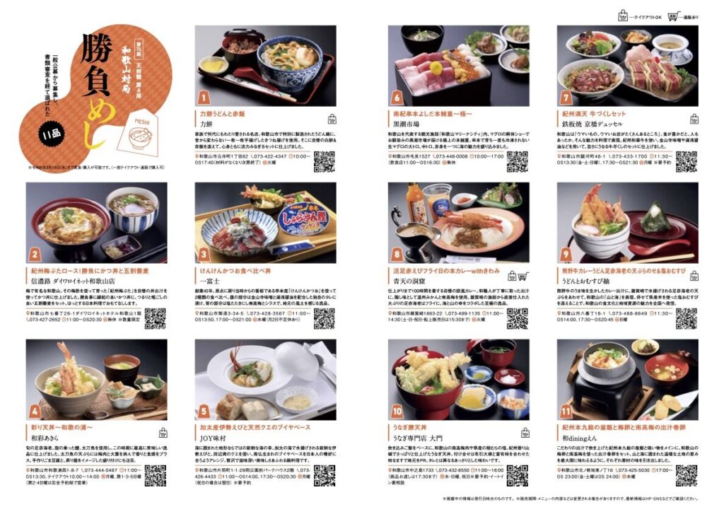 I: 和歌山市で作成した「勝負めし」メニューブックの中から、棋士のお2人が食べたいものを選んで召し上がられましたので、ご紹介します。