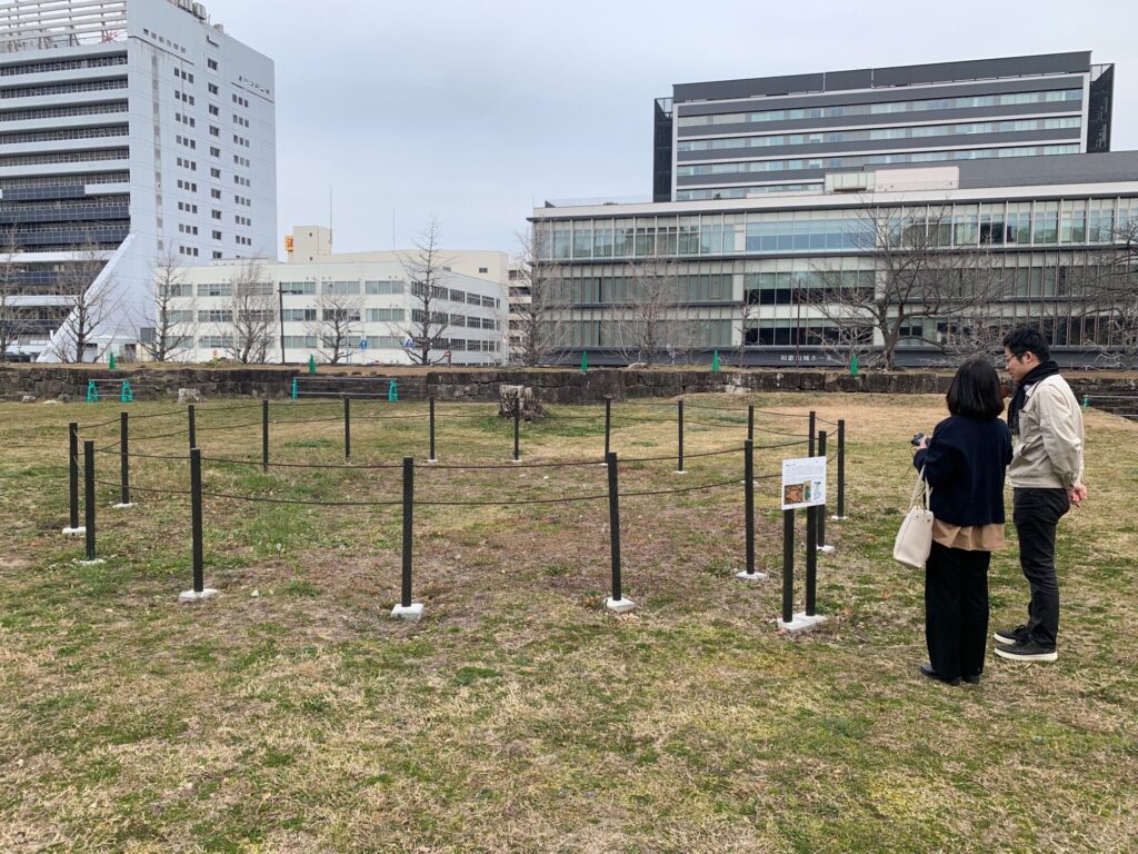 そうですね。実際ここで看板に記されている範囲は広場の西側だけなのですが、看板の目の前に大奥と呼ばれるエリアが広がっていた、ということになります。