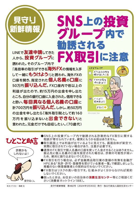 Q:SNSは便利なものですが、うまい儲け話や甘い誘いには気を付けないといけませんね。