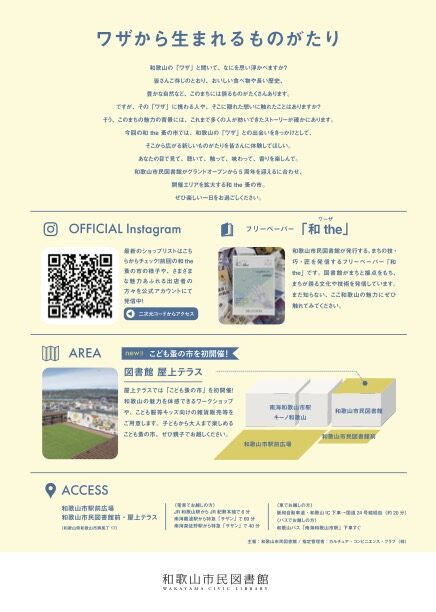そのひとつが「和the蚤の市」です。「和 the」というのは和歌山市民図書館が発行しているフリーペーパーで、和歌山が誇る文化や技術を発信しています。その和 the を体感いただくイベントとして蚤の市を開催します。