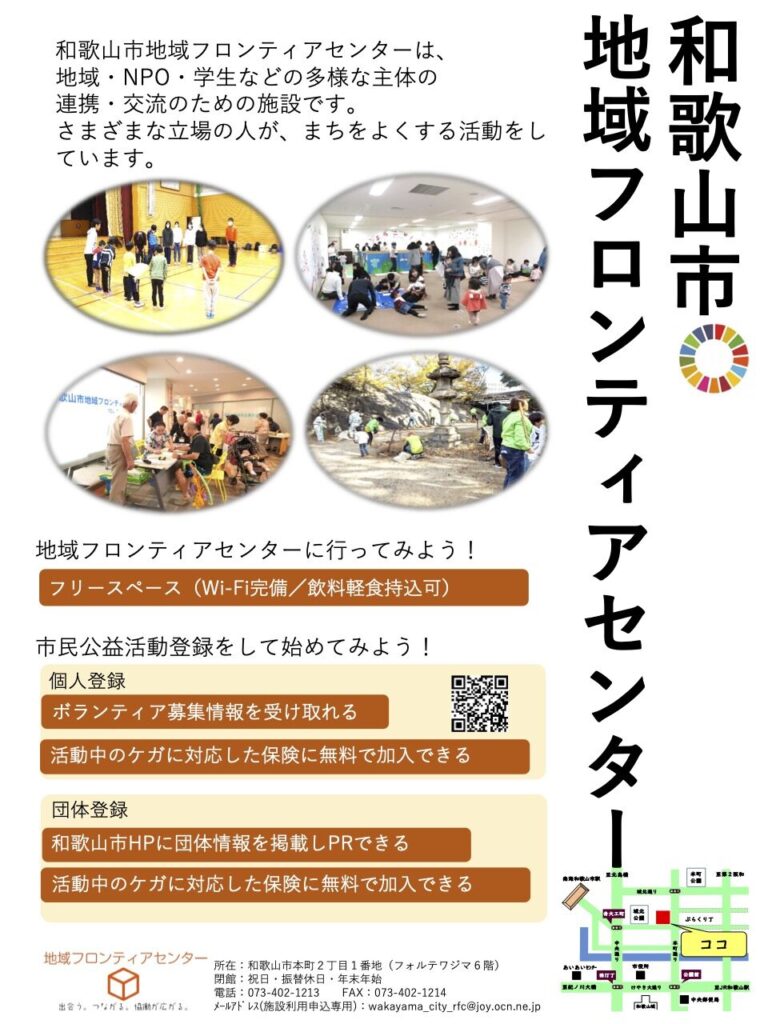 また、フォルテワジマ6階にある「和歌山市地域フロンティアセンター」を拠点として、地域の方やNPO団体、学生など異なった組織や立場の人の連携、交流を促進し、協働の輪を広げられるようにサポートを行っています。