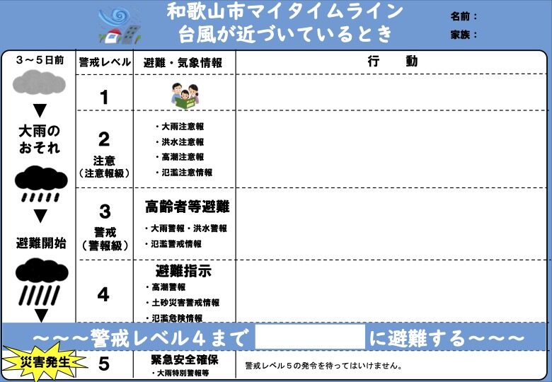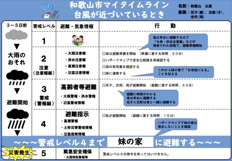 3つ目は避難が必要になった場合に落ち着いて対応できるようにマイタイムラインを作成することです。