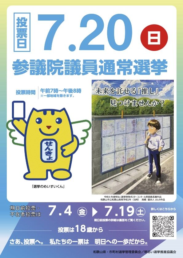 今回の選挙では、平成19年7月21日までに生まれた方であり、和歌山市に3ヶ月以上お住まいの方、具体的に言いますと、和歌山市内に令和7年4月2日までに転入の届出をされた方が投票を行うことができます。