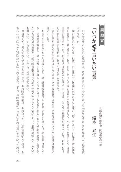 Q  受賞された作品をせっかくなので一部を読んでいただきたいな、と思うのですが、お願いできますか?タイトルとその一部お願いします。