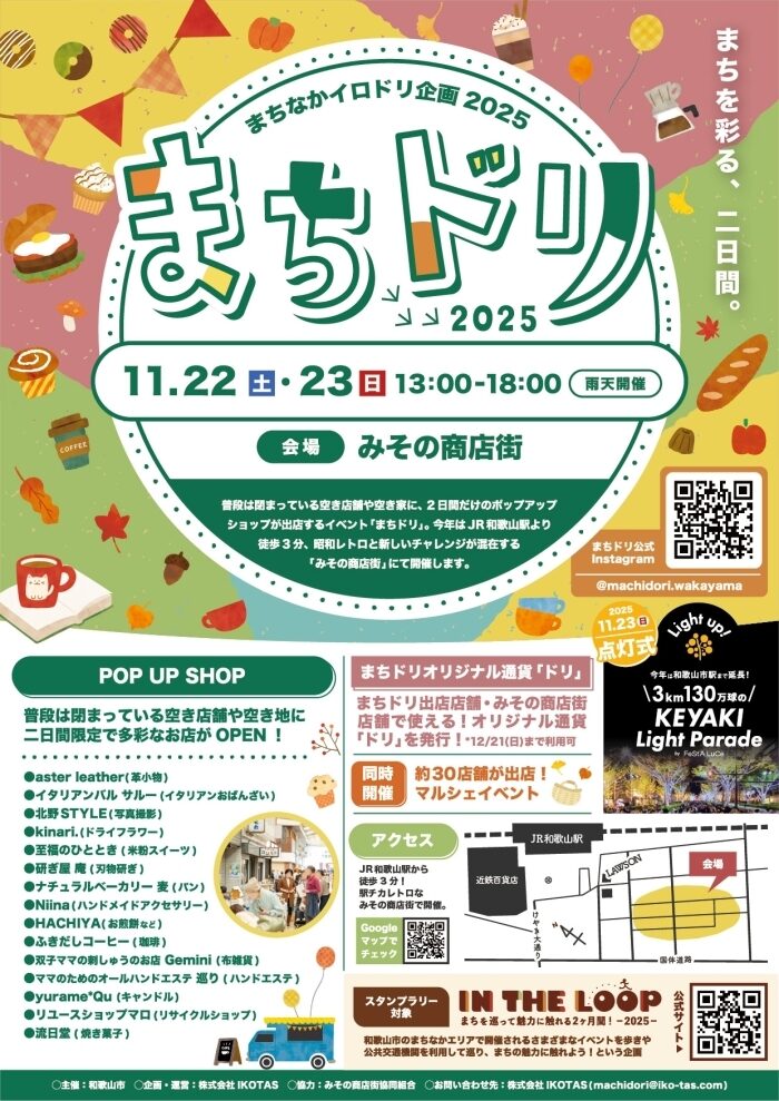 今週末の11月22日(土)、23日(日)に「みその商店街」で開催される「まちドリ2025」について、運営を委託されている株式会社IKOTAS代表取締役の前川怜輝さんにお話を伺います。