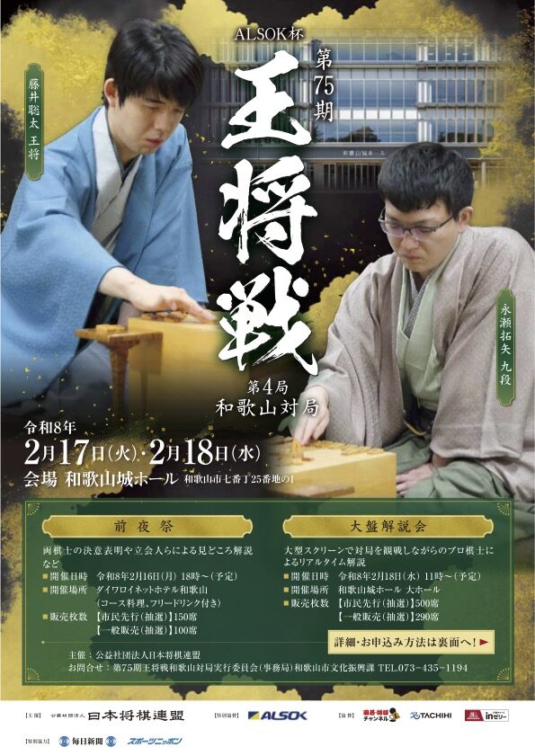 「第75期王将戦第4局和歌山対局」が和歌山城ホールで開催されます。