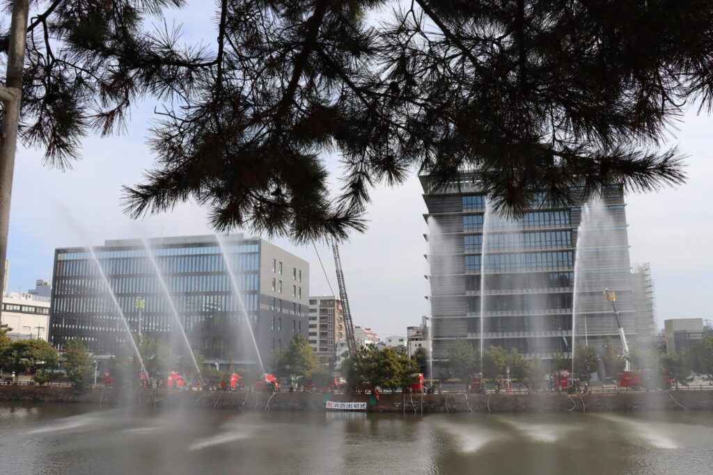 その後、11時30分からは和歌山城東側の堀端で「放水演技」を行います。放水演技では、市民の方から募集した楽曲に合わせた躍動感あふれる放水を行います。