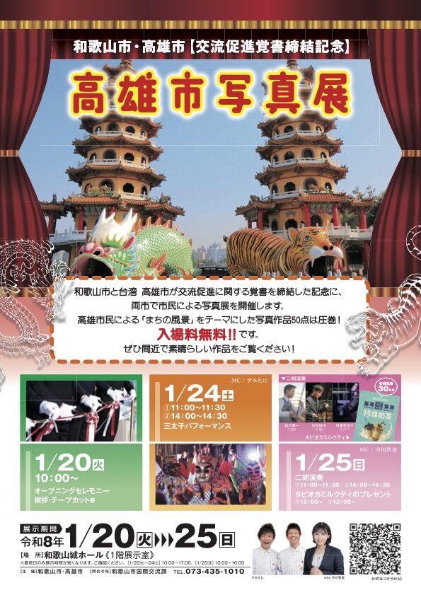 今回の高雄市写真展は、和歌山市と台湾・高雄市が交流促進の覚書を結んだことを記念して開催されるもので、写真を通して高雄市の魅力に触れていただけるイベントです。