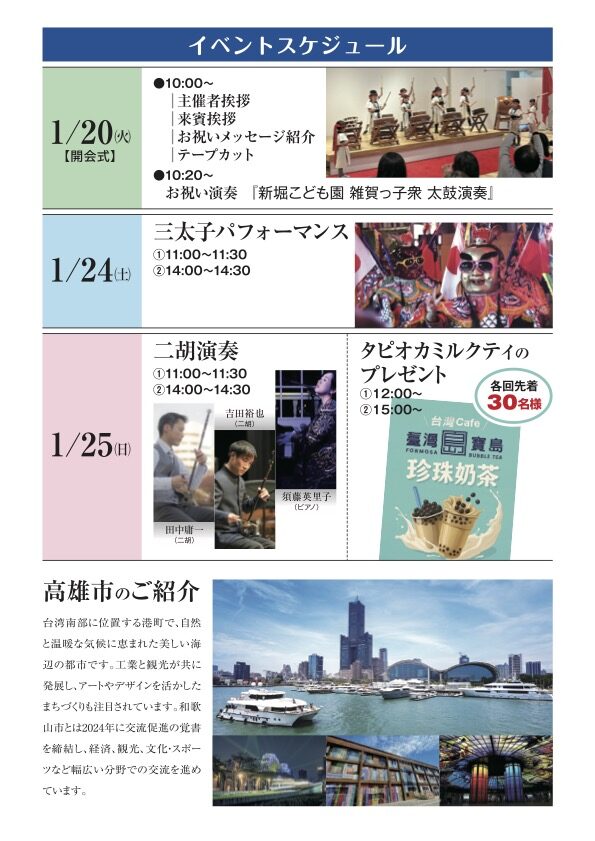 さらに25日の日曜日には二胡の演奏など、台湾文化に触れられる催しが行われます。