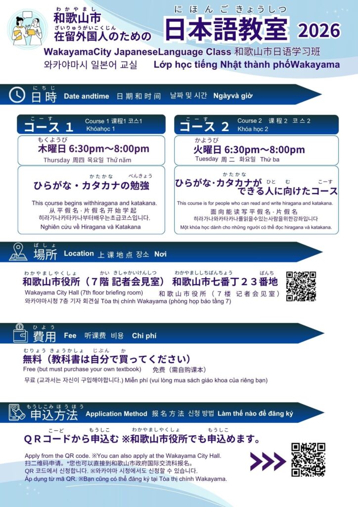 日本語は、ただの勉強ではありません。人と人をつなぐ“架け橋”です。日本語を学びたいと思っている外国人のみなさん、和歌山市で、一緒に一歩を踏み出してみませんか?