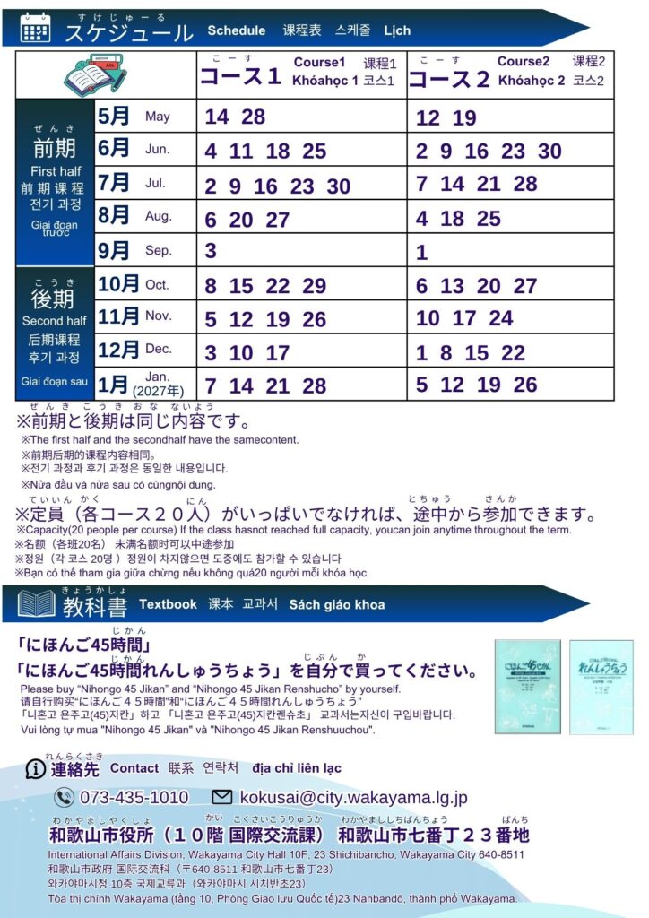 Q: 次回の日本語教室は、いつ開講予定なのでしょか。