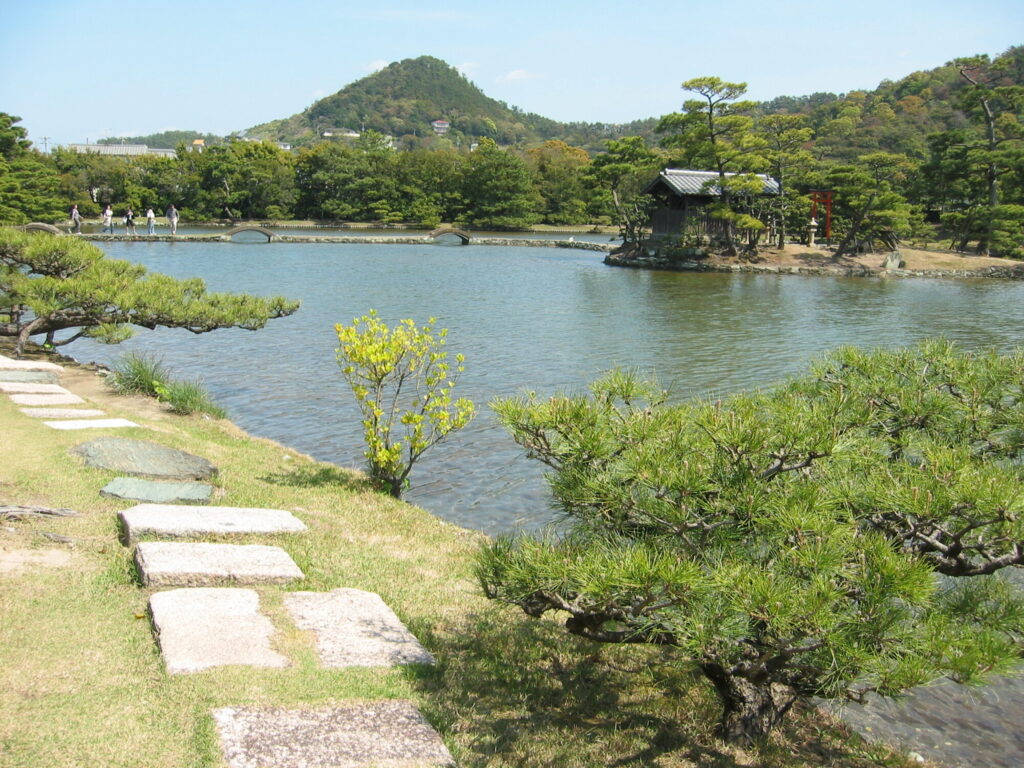 I: 海水を取り入れた「汐入り」の大名庭園は珍しく、徳川将軍家の別邸であった「浜御殿」と「養翠園」の全国で2か所しかありません。海に近い特長を生かして、海水の池になっています。